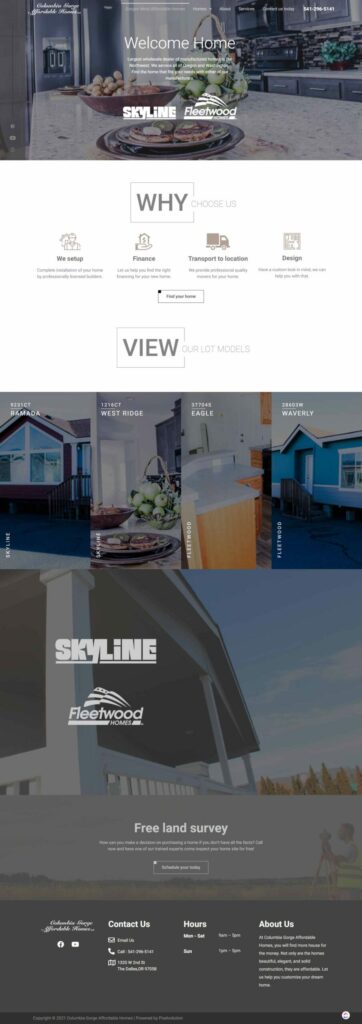 We built Columbia Gorge Affordable Homes to display all the models available by the Manufacturers Skyline and Fleetwood in order to provide the best online solution for there viewers as they locate the home that fits there need. Our project included Photography, video, SEO, Social Media, Application by Filtering homes by features, Wordpress setup, and hosting.