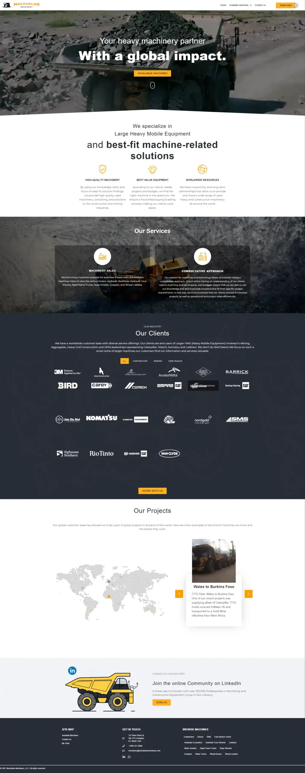 Macfarlan Machinery, known for its comprehensive range of used mining and construction equipment, approached Pixelvolution to enhance their online presence. The primary focus was to improve product filtering capabilities and to redesign the website to be more engaging for their user base.