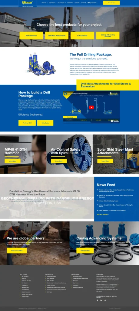 Mincon approached Pixelvolution seeking a comprehensive overhaul of their existing website with the goal of enhancing both the aesthetic and functional capabilities of their online presence. Tasked with this ambitious project, our team set out to create a modern, responsive, and user-friendly website that reflects Mincon’s industry-leading position in drilling technology and services.